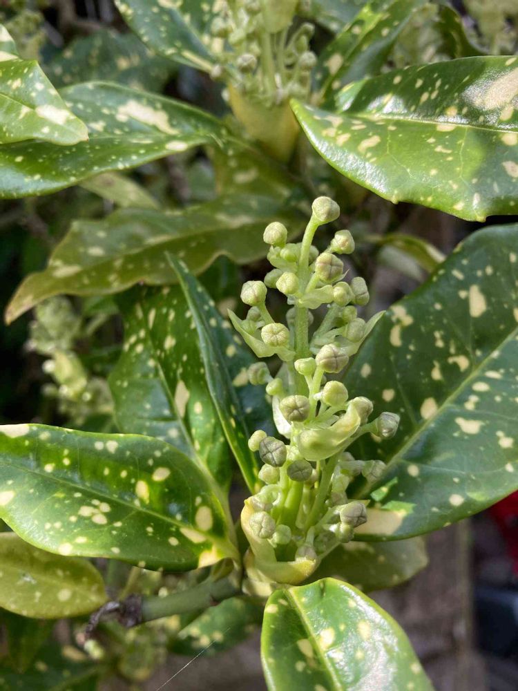今朝、青木の花を見つけました。画像⤴️しましたので、良かったら見て下さい。