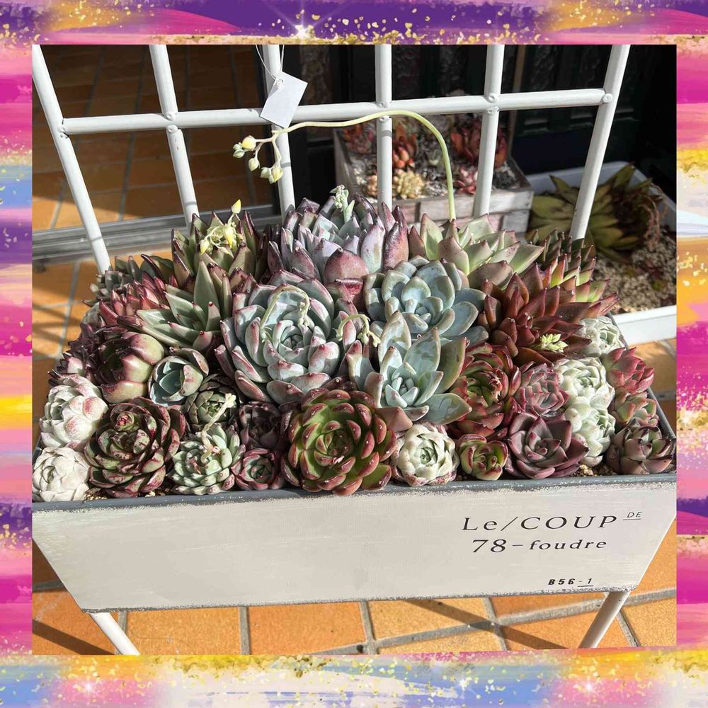 一昨日夜にリビングにてゴソゴソと作りました*ˊᵕˋ*今回のやらかし多肉ちゃんの為に新調した椅子型のブリキのプランターჱ̒ ー̀֊ー́ )届いた多肉の中で1番でっかいのを真ん中にドーンと入れました(๑•̀ㅂ•́)و✧
