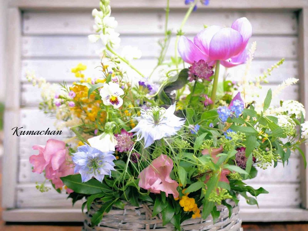 タイトルは「春花あふれるシャビーシックバスケット」です(笑)