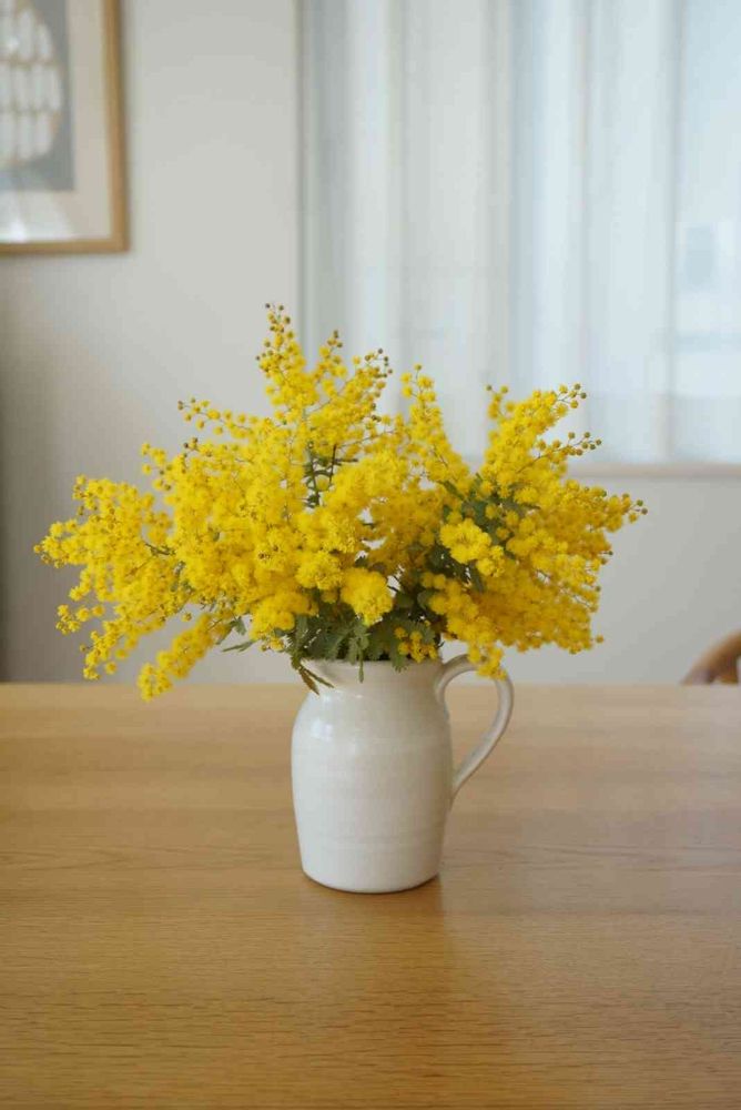 ひさーしぶりにGS投稿です💦ミモザが満開です。切り花はフサフサが長持ちしないので、2日に一度切り取ってあちこち飾って楽しんでいます