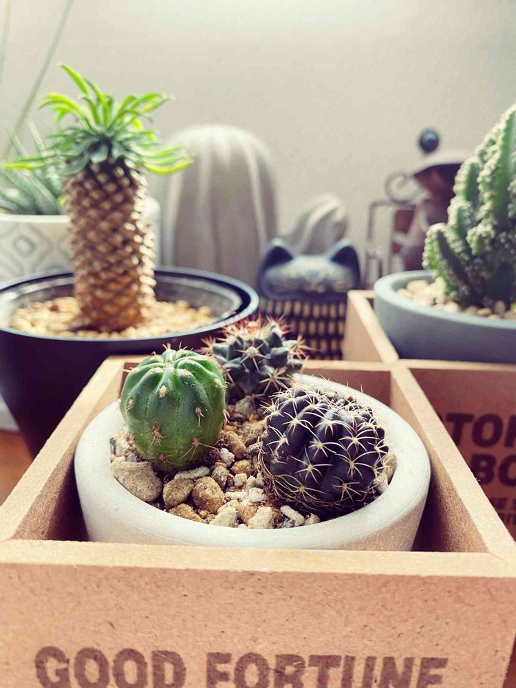 🌵×3 鉢に寄植え→足が当たり撒き散らす