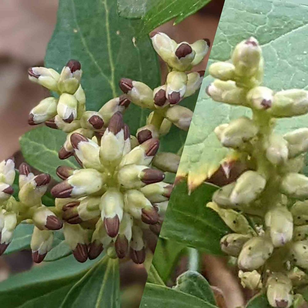 富貴草の一つ一つの蕾の先の方が茶色に色付いて来ました