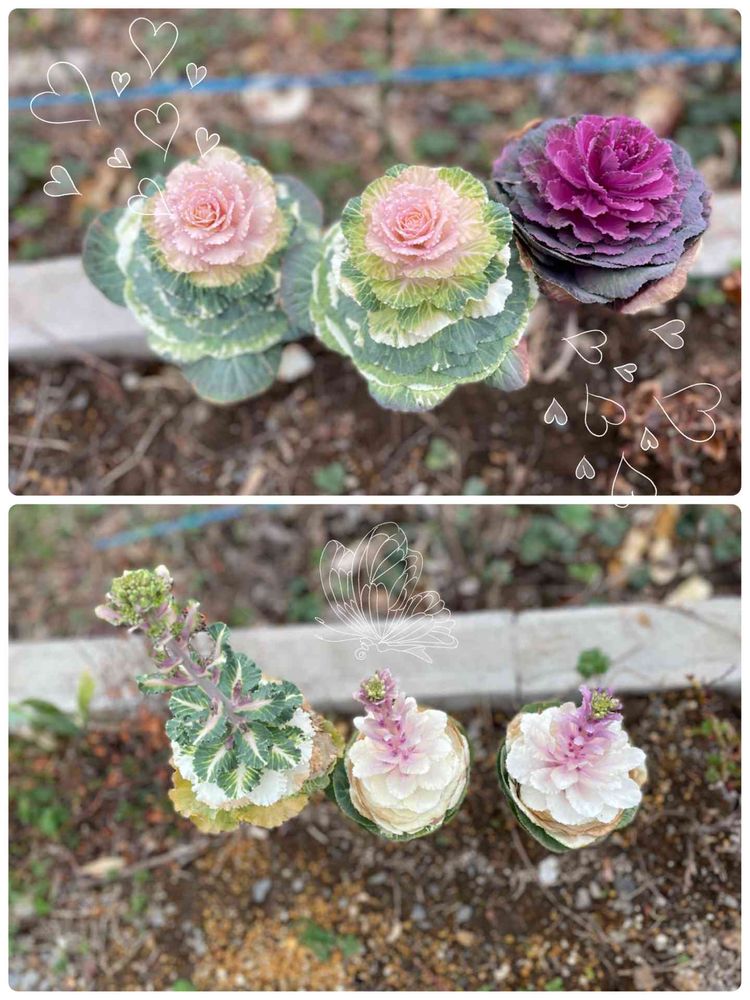 冬に植えた葉牡丹なんかアイスクリームみたいで可愛い🍨❤️