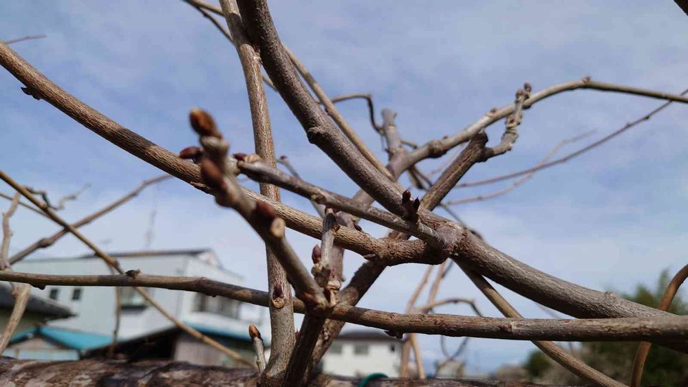 丸みをおびているので花芽のようだけど、今年は咲くかな藤の花。