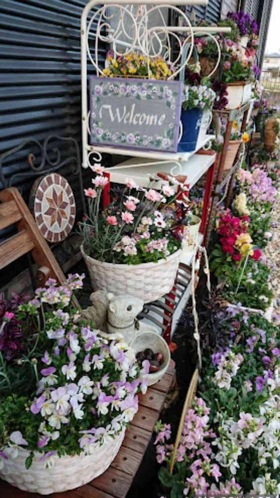 ガーデンチェアーを入れ込んで白籠に寄せ植え🎶