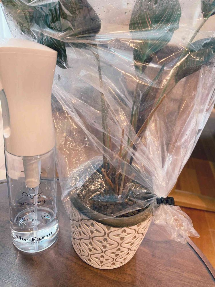 芽を出しては枯れを繰り返す…湿度が足りてないのかなと穴を開けたナイロンをかけると葉の状態も安定し、新芽が上がってきた🙌このやり方、合ってるか分からないけど…とりあえずは様子見👀