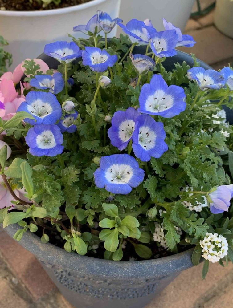 寄せ植えに入れたブルー💙のネモフィラ、蒸れたせいか、今は、半分になってしまいました。過去picの綺麗なものにしました。