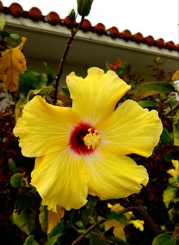 昨日も今朝も曇が多くドンヨリ☁☁☁そんな中、大きなハイビスカス💛💛💛私の手のひら以上ありますー!(o^^o)