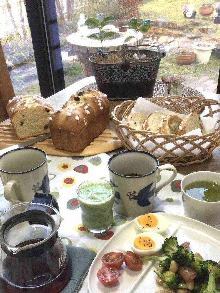 今朝は、薄暗く、何故か、クシャミが止まらない😅のんびりいただきまーす😆