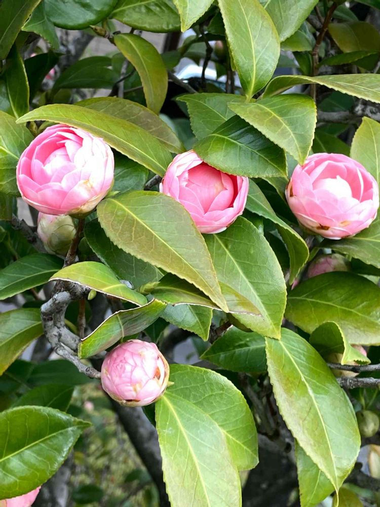 乙女椿です。これから花が開花しますね。まぁるくて可愛いですね。