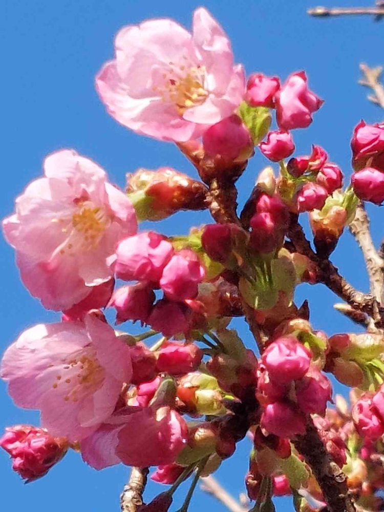 濃い赤の可愛い桜、😍💓💓
