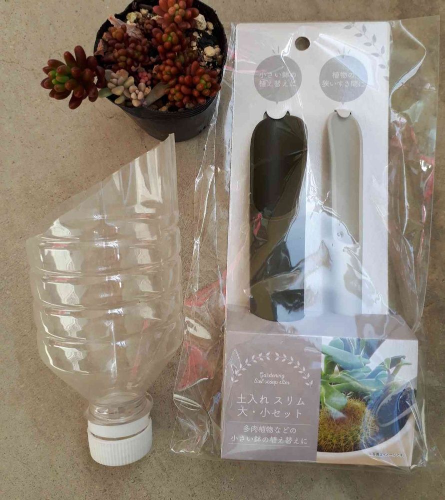 セリアの土入れ🌱GS ユーザーさんの投稿で知りました❗ラスイチ👀ゲットできてラッキー‼️今までは、ペットボトルをカットした物(案外使える🎵)を使ってましたが、これで不器用な私でも、狭い所に綺麗に土が入れられます💓