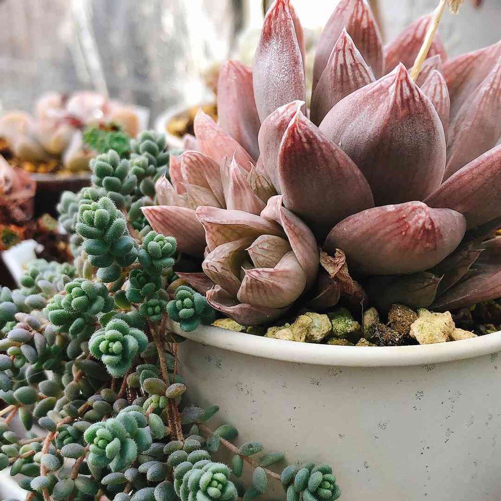 多肉5年生😘6歳、4歳、3歳の三太郎子育てしつつ多肉も🤘冬も夏も、ゼーーンブ外で越します😱おかげで発色がいいかも👅二和園lover