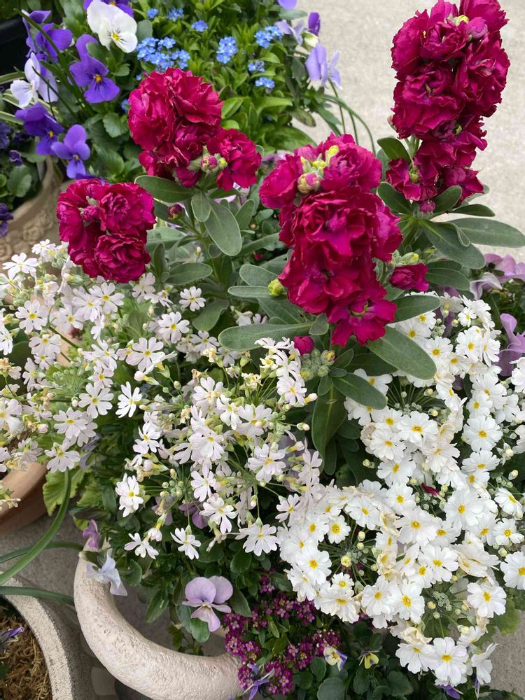 大きな鉢にたくさん植え、春になって本領を発揮してきました😊