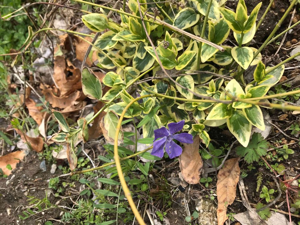 斑入りじゃあない、ツルニチニチソウも有るけど、斑入りは、葉っぱだけでも綺麗ね😊