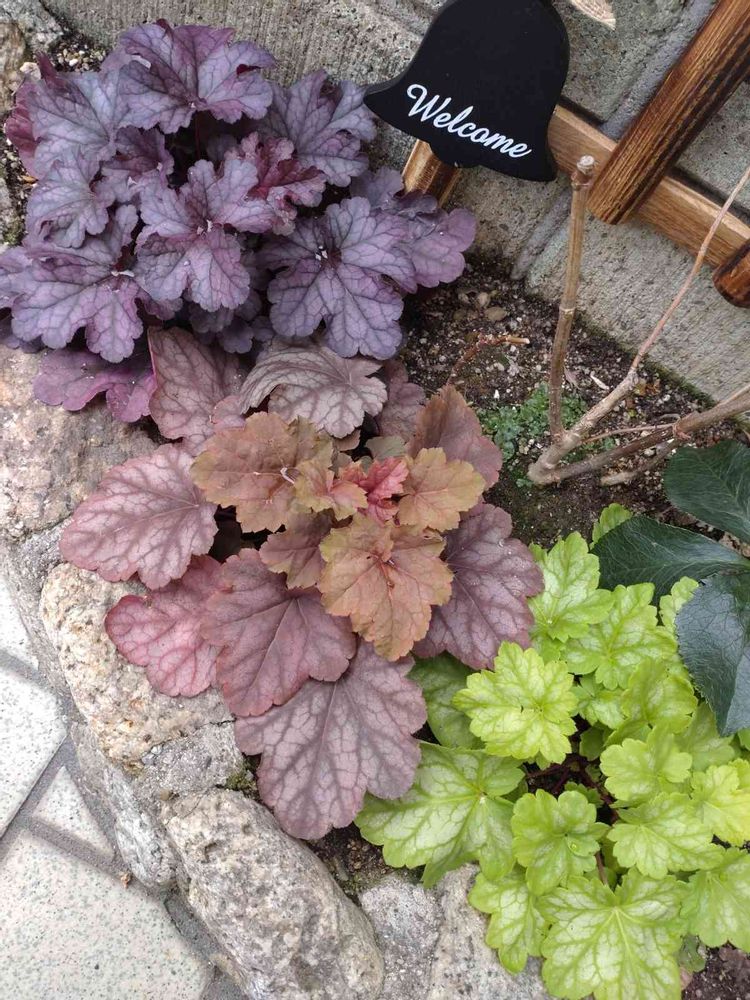 ヒューケラ スウィートプリンセスが上段、中段、下段、少しずつ色が違ってグラデーションのプリンセスドレスみたいに❤️