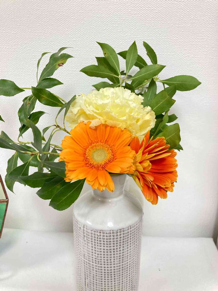 トルコ桔梗の少し傷んできたものと、卒園式でもらったガーベラを組み合わせましたが、春らしい感じで気に入っています💕