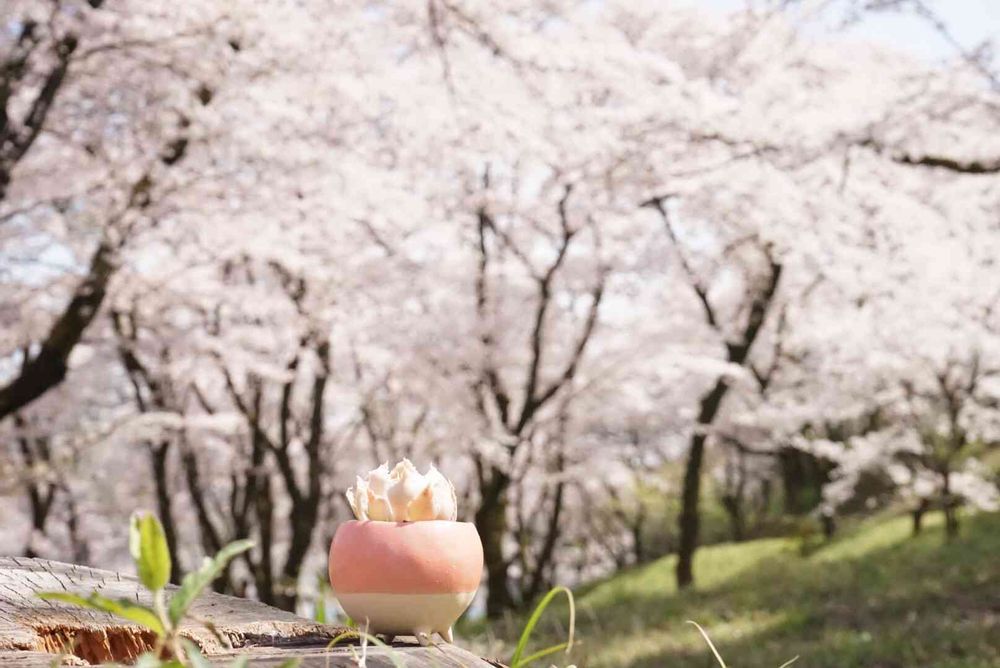 サクラピンク鉢と桜の写真が撮りたく、わざわざ持って行きました。笑。