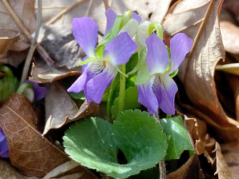 枯れ葉の中から顔を出したスミレみっけ👀‼️