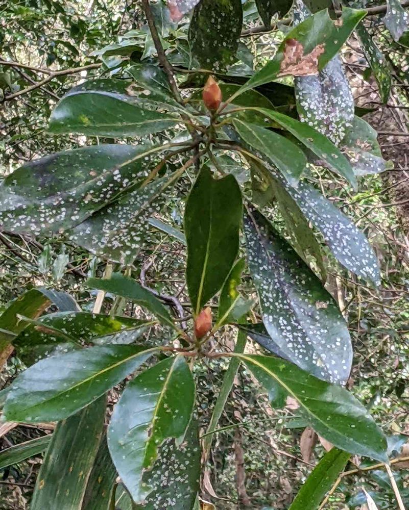 わかりにくいのですが、シロダモの葉っぱは、三本の葉脈が目立つ、とあります。この葉っぱの葉脈はその特徴が見られません💦