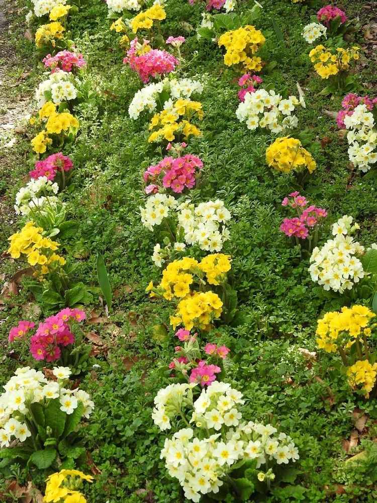 大きな花壇でイキイキと綺麗に咲いていた🏵️🌼💮プリムラ🏵️🌼💮