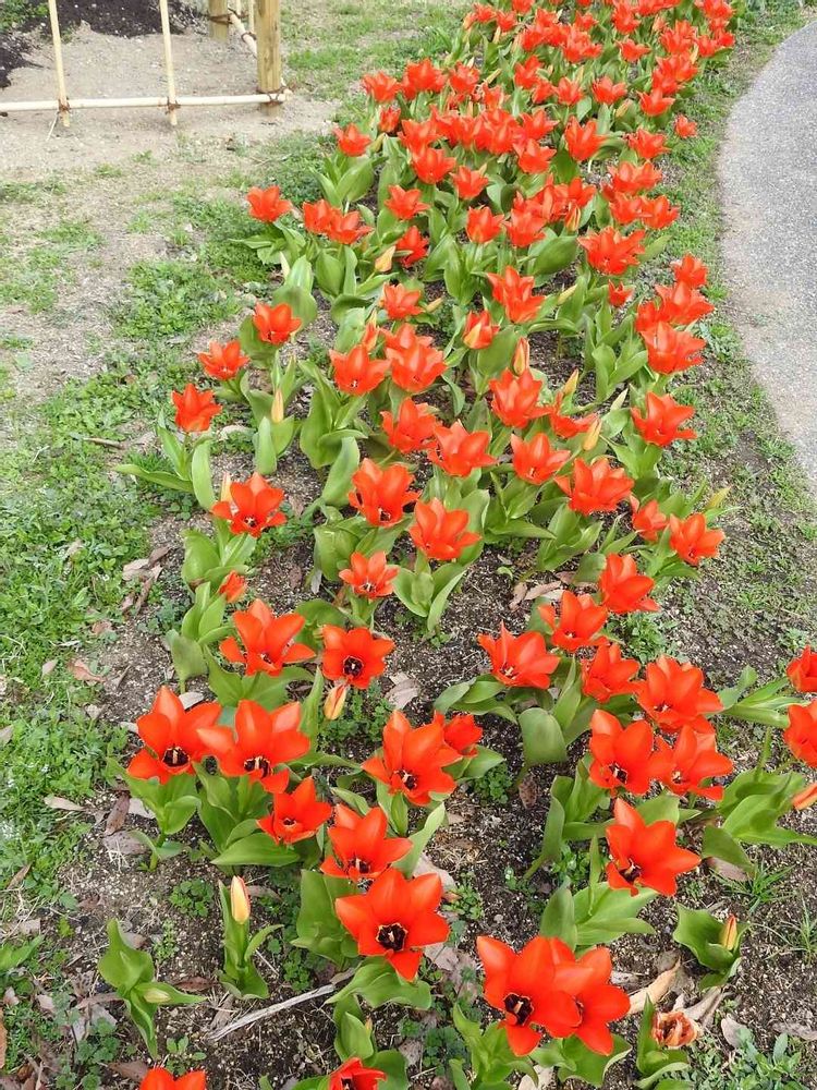 大きな花壇でイキイキと綺麗に咲いていた🏵️🌷チューリップ(原種?)🌷🏵️