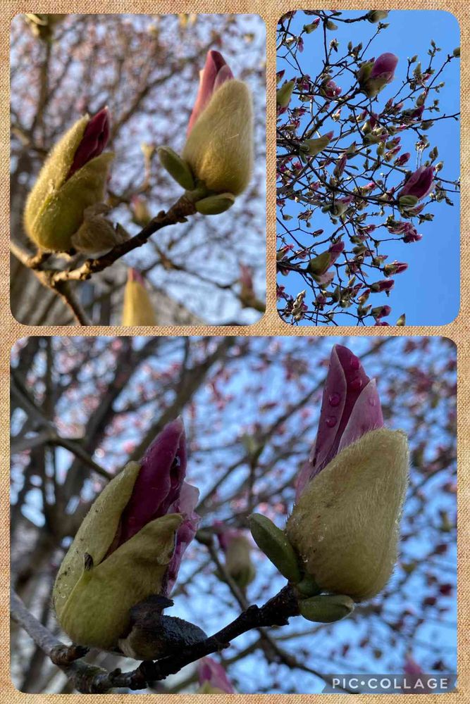 私の住む近くの空き地に紫木蓮があるのですがまだまだ小さい花芽です^^;