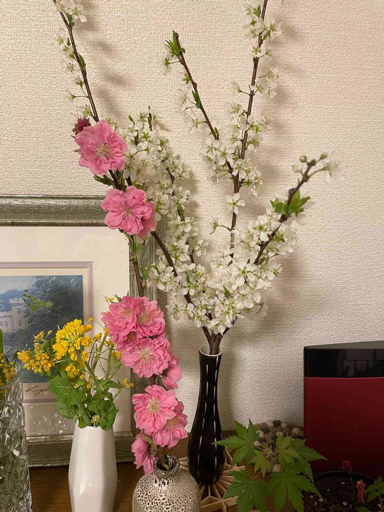 みえこさんの菜の花,花桃,梅 (白梅)の投稿画像