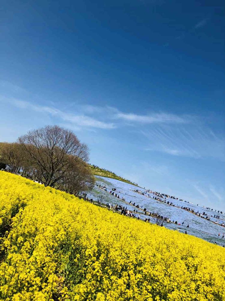 青い空と青いネモフィラ💙黄色の菜の花🌼