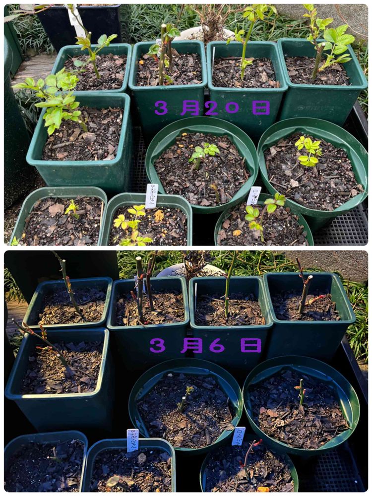去年の挿木っこ達が暖かい日が続いているのでぐんぐん葉を出してきている🌱