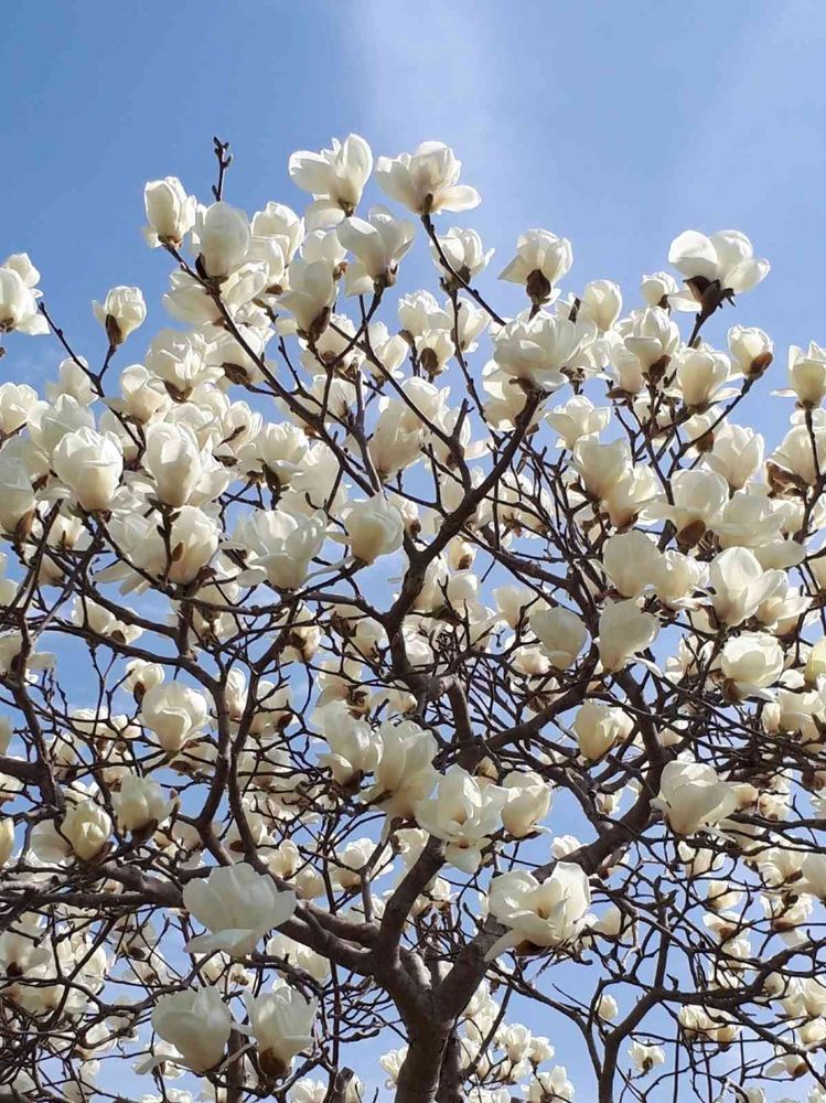 白い😶🌫️🤍モクレン満開、青い🟦空の中でとっても素敵です(୨୧ ❛ᴗ❛)✧
