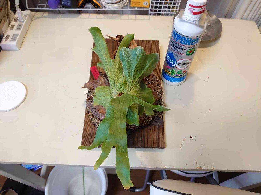 女王ことビカクシダ・ワンダエと液肥を眺めながら考え中です。