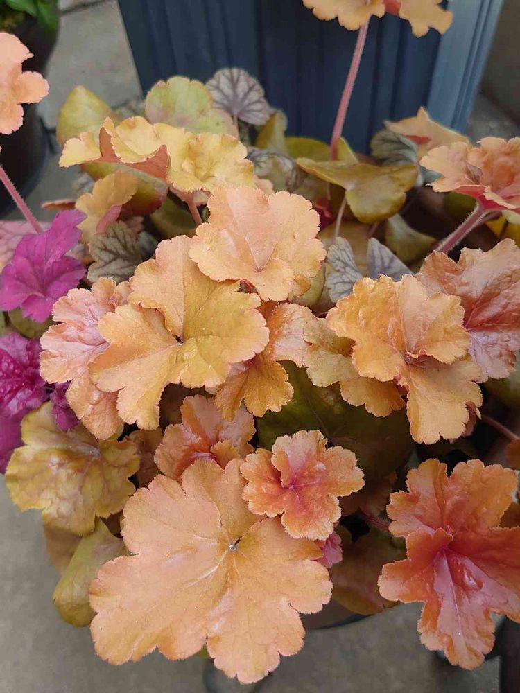 ヒューケラの寄せ植え、リーフばかりでも色んな色を楽しめていいですね〜❣️