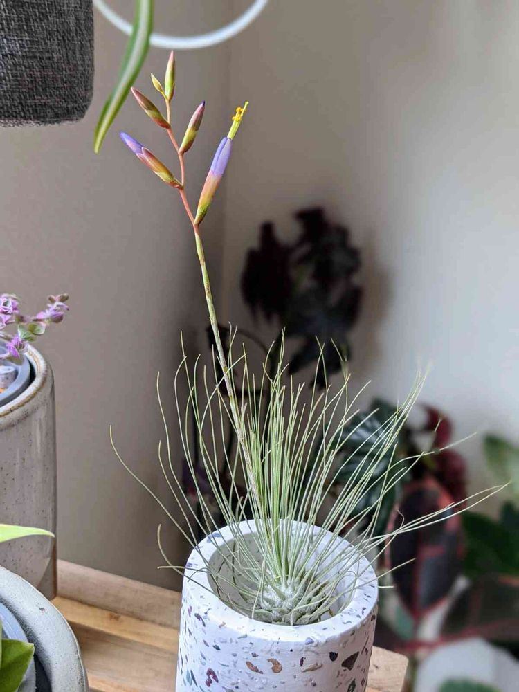 チランジアの花って見た目とのギャップあって驚きますよね☺️個体差あるのか、もっと濃い色の子もいたり。エキゾチック♡な雰囲気楽しみまーす💃