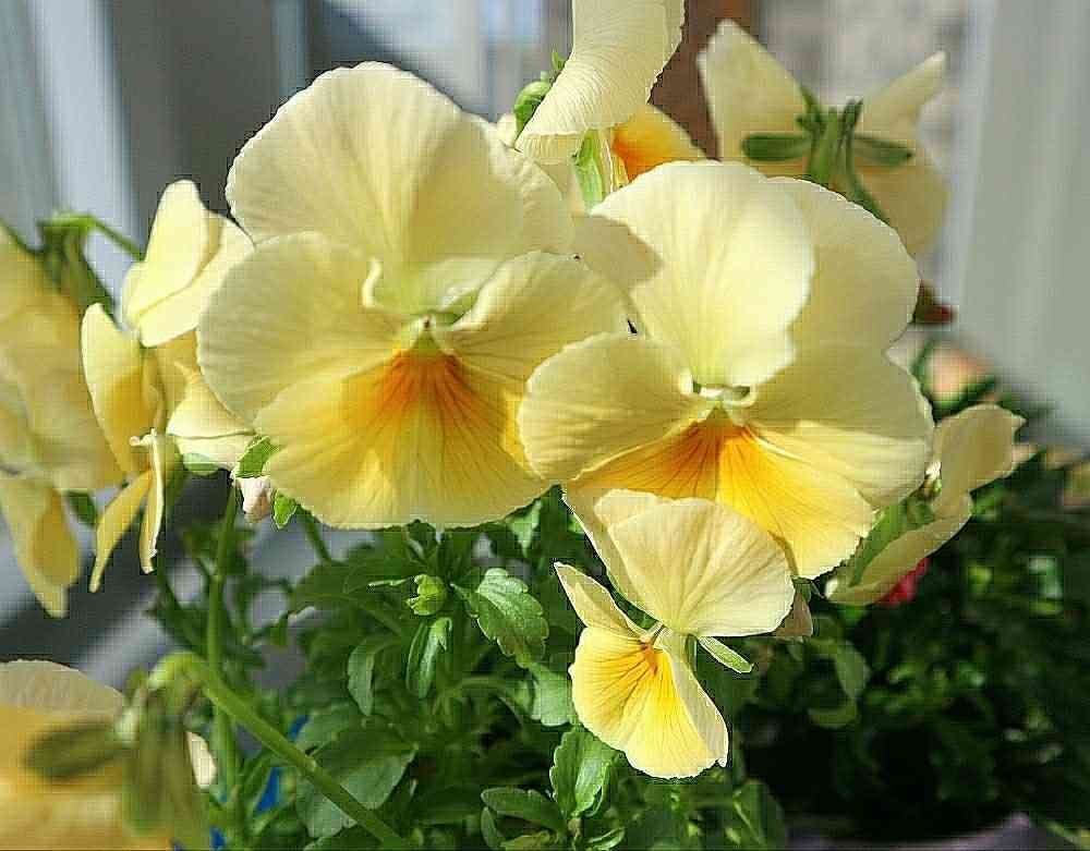 パンジーのお顔を見ないと春は始まらない。春らしいレモンイエローの子達。お外に出たらウキウキしてる✨