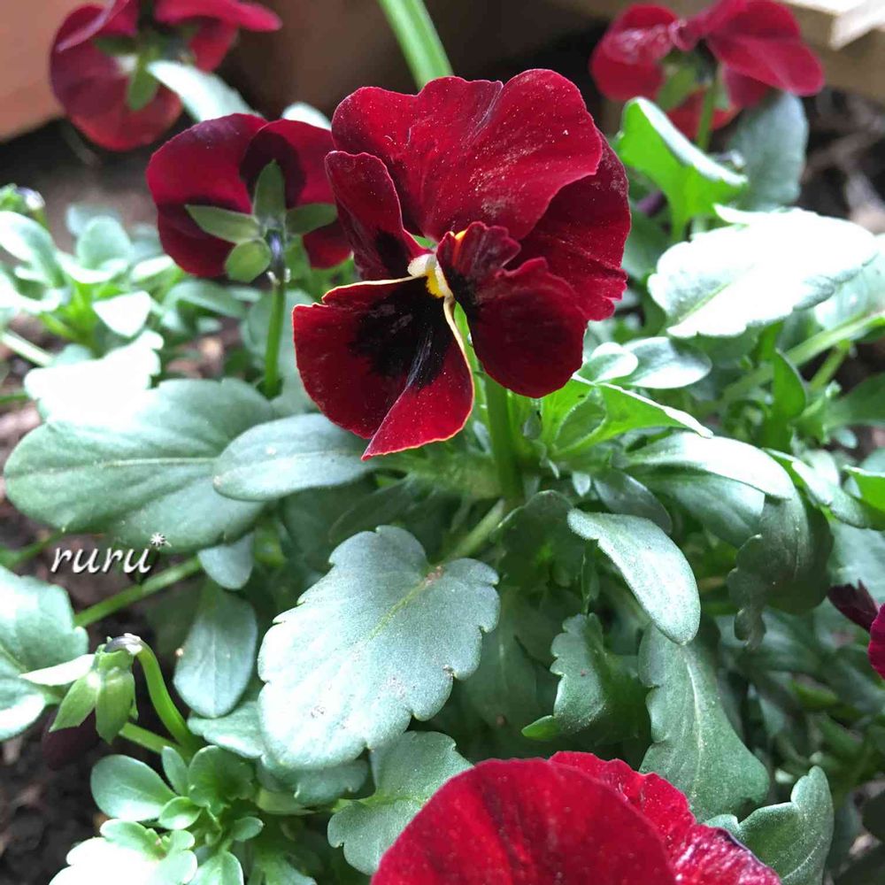 かなり前に全く花のついていない状態(見切り品¥50)で連れ帰ったビオラちゃん。シックな赤い子が咲いてくれました♪ありがとう😊