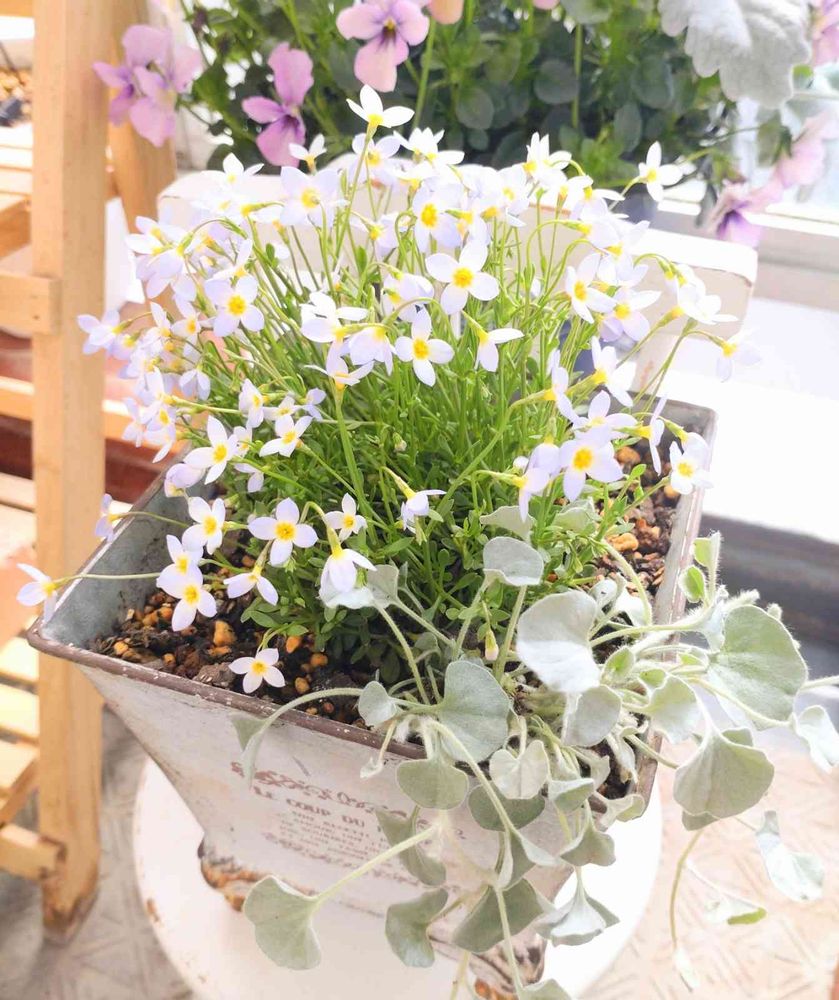寄せ植えに入りきれなかったヒナソウとディゴンドラシルバーフォールズ❁