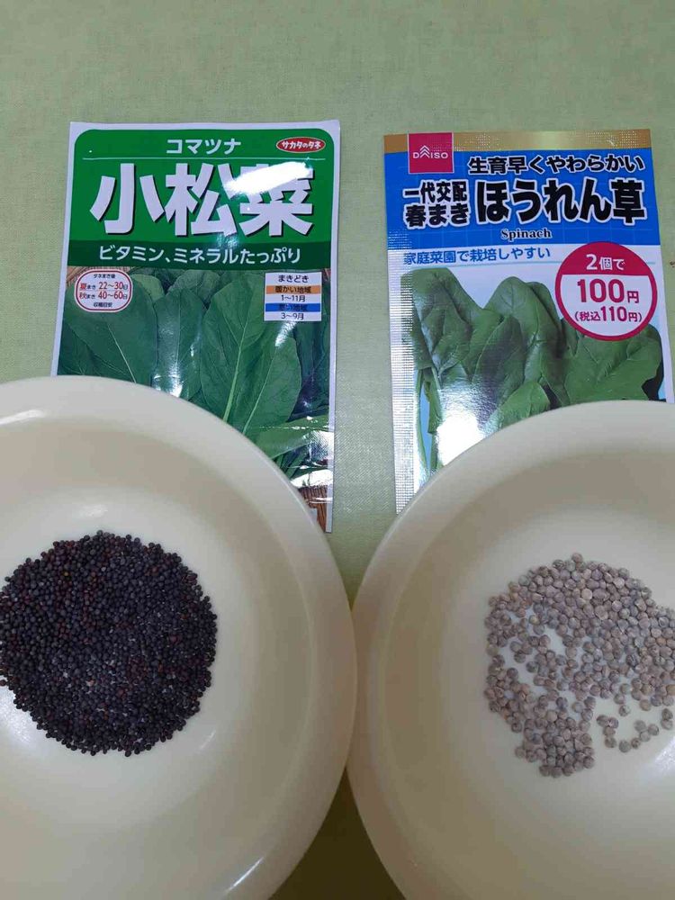 先日購入したほうれん草と、昨年の残り小松菜の種を蒔きました。