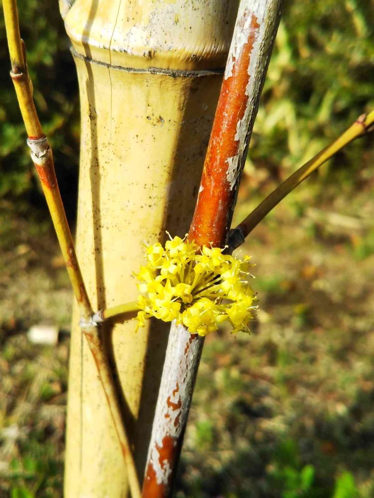 毎年楽しみにしてたサンシュユ、伐採されてショックだったけど、少し離れた所に幼木があり、花もついてた。来年も見にこよう🎵