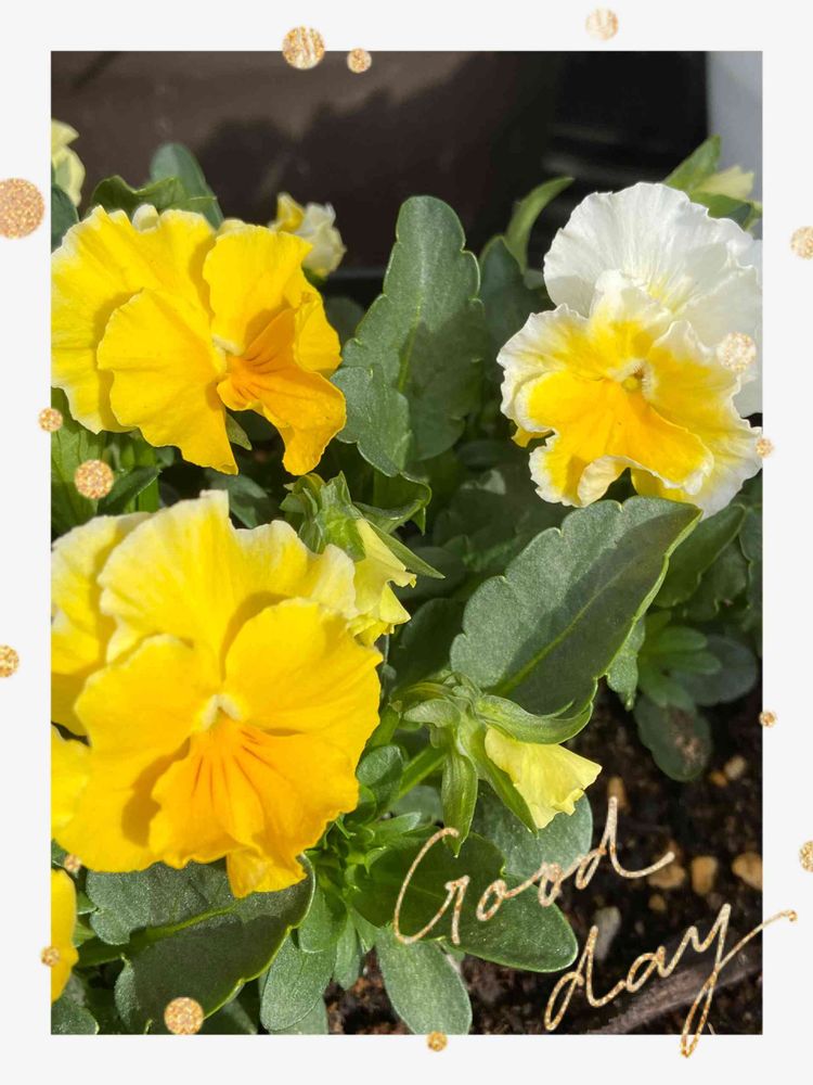 自家採種ビオラ。親はエッグタルト。左のような黄色一色、しかもひげ付きが優勢だったのですが、おや、白身多めチャンがでてきましたよ。エッグタルトらしくていい感じ。ひげも薄まってる?