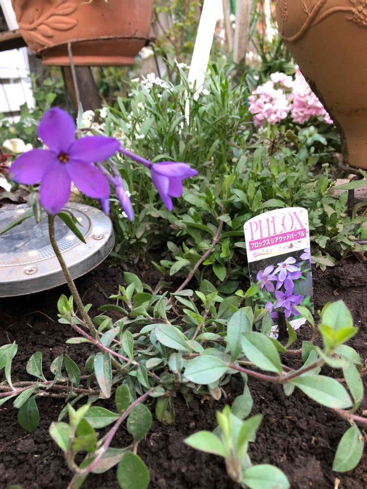 初めてお迎えした フロックス シアウッドパープル💜 半日陰と日向に、一つずつ植えました グランドカバーになってくれるかな😊