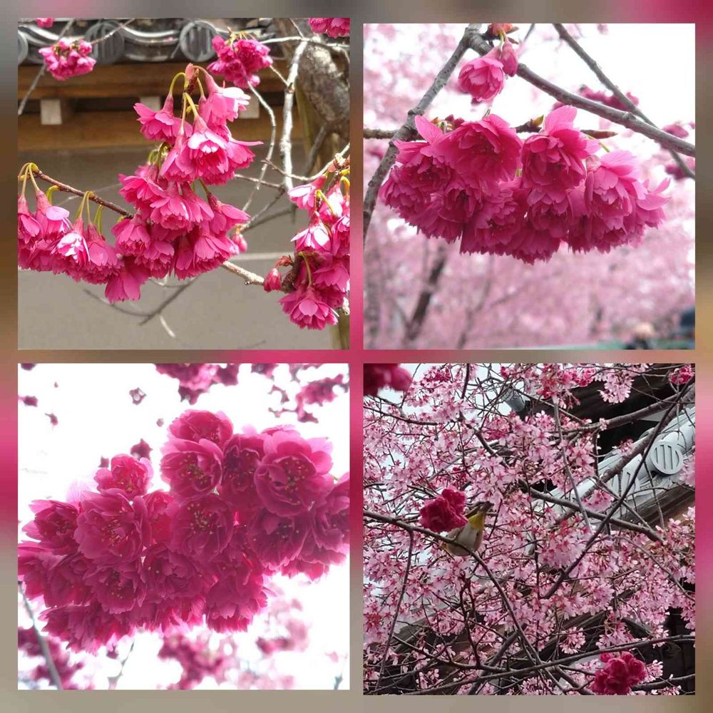 バラのように華やかな寒緋桜に今年もうっとりしました😍🌸 さらに、初めてメジロも一緒に写り込めました🥰