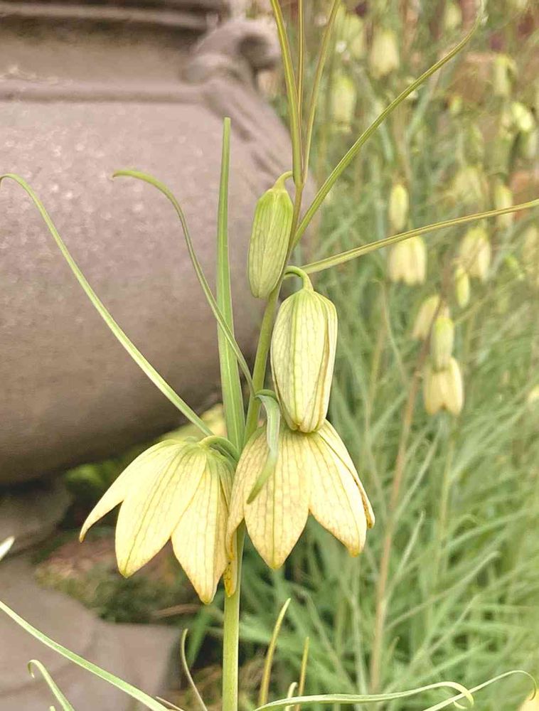 ナチュラルガーデンの小径に並ぶバイモ(バイモユリ・アミガサユリ)