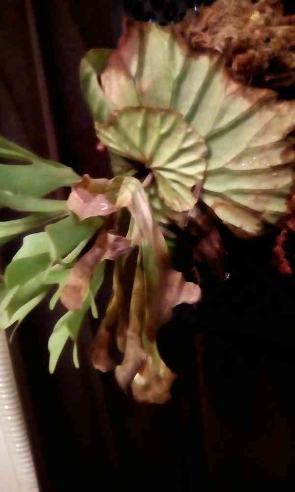 何か3つある胞子葉の1つが黄色くなってしおしおに枯れてきた😌何これ、、全体的に元気ないし、緑が薄い😥どーしよー、どなたかご教示下さい〜(ToT)