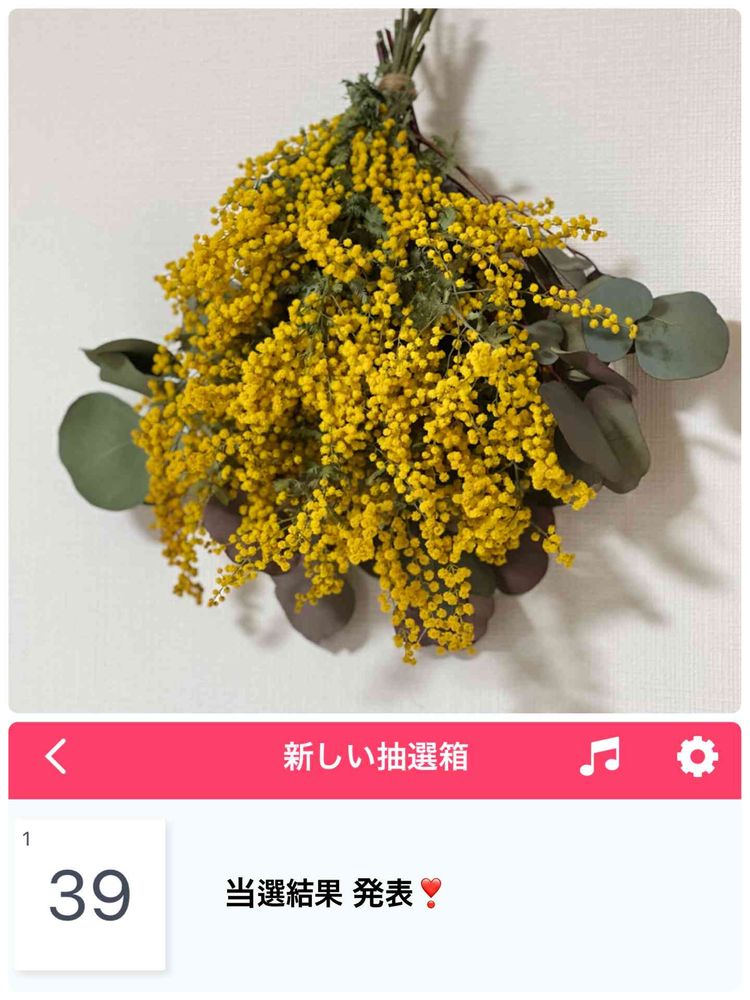抽選アプリで39と出ましたので、39番目にコメント、ご応募頂いたミルさんが当選です❣(*´ω`*ノノ☆パチパチ