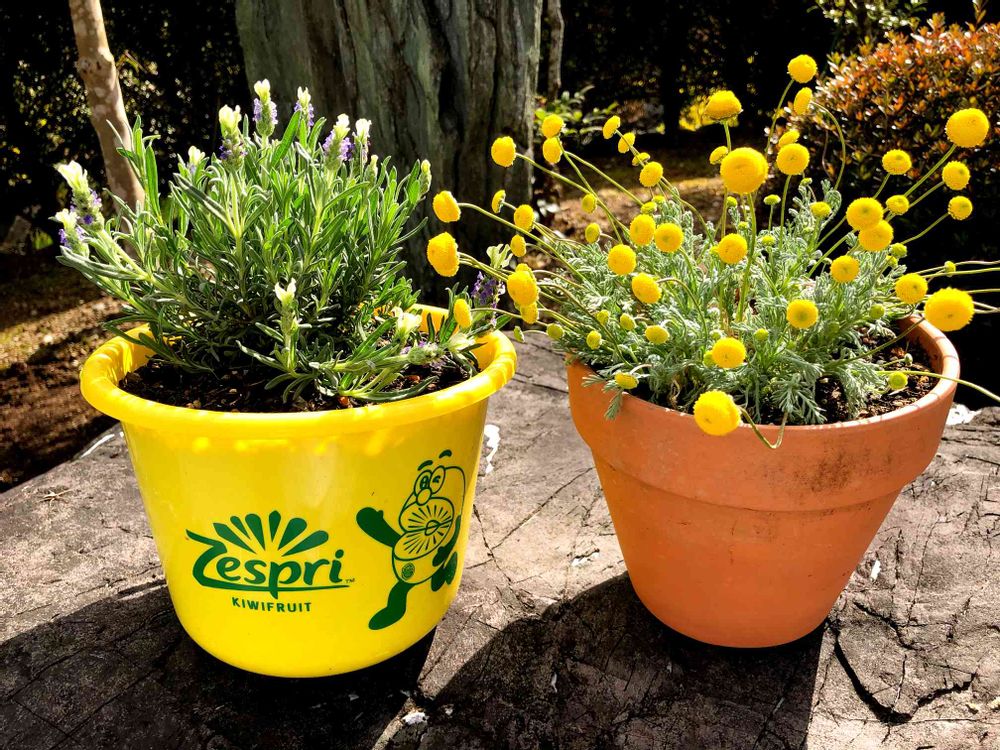 お花を植えるとポップな感じで可愛くなりますね!