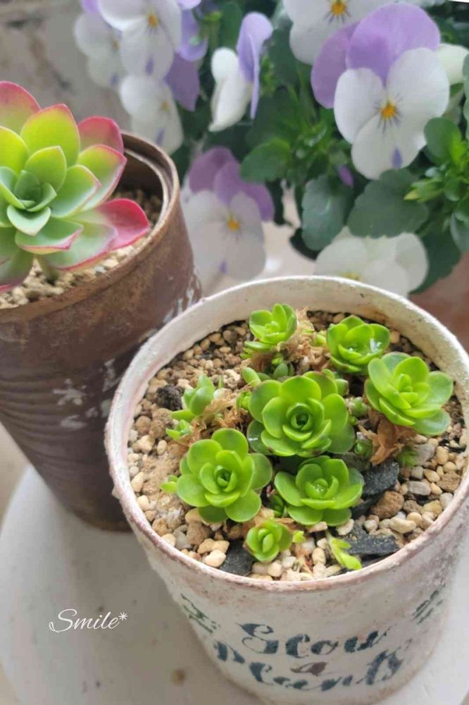 子持ち蓮華の色違いではないと思うけど、子株ランナーも出てきて、子持ち蓮華と似てるね☺️たくさん増えるといいなぁ💕