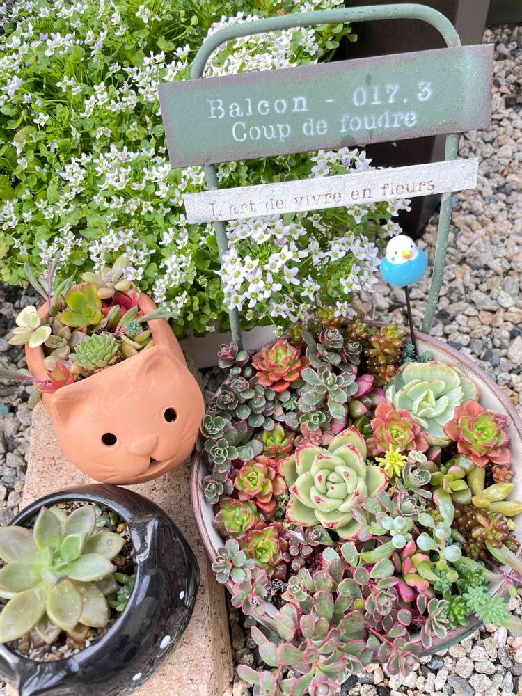 可愛い"(∩>ω<∩)" もりもりのお花と多肉チャン やばかわ😍