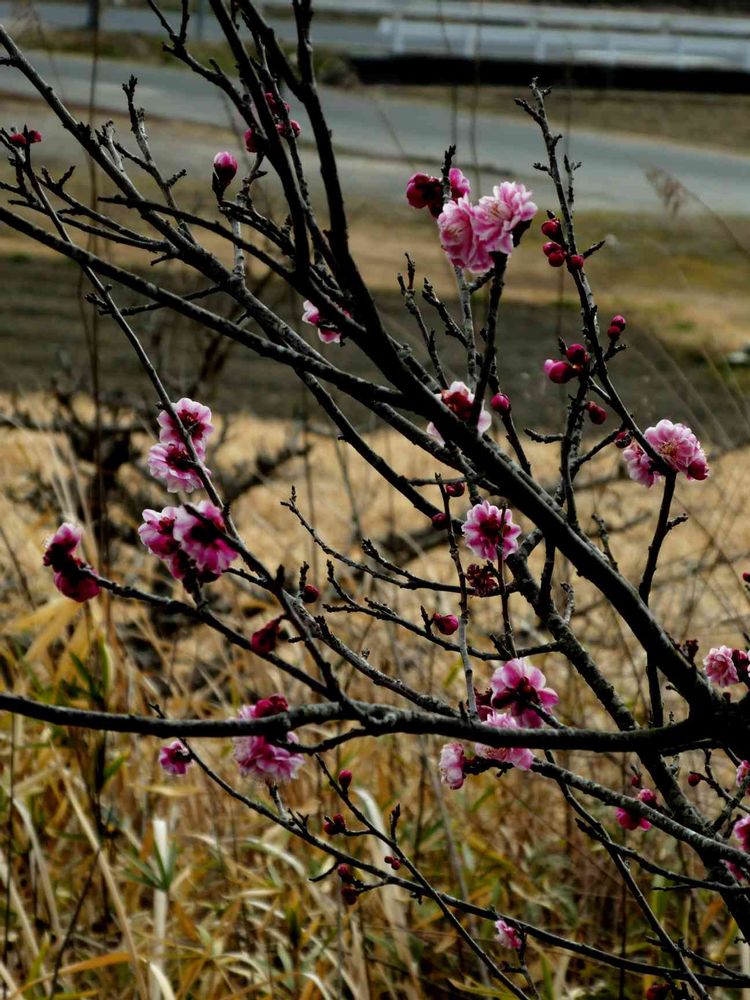 隣地の紅梅、白梅と並んで咲いている「くすだま」と言う梅