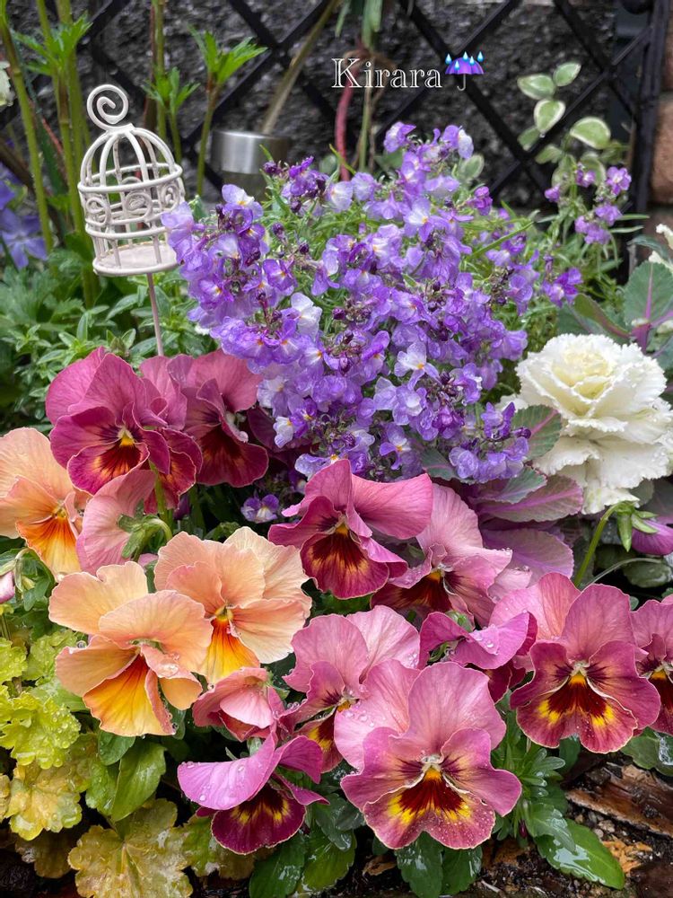 昨年11月下旬に小さな花壇に植えたリナリアは冬も咲き続け小輪パンジーのキューティーアプリコット達と 冷たい☔️に項垂れています(^-^;